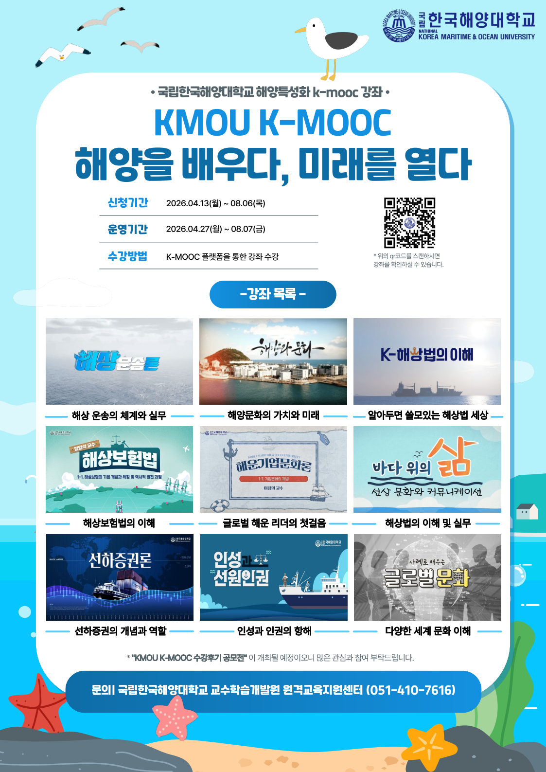 국립한국해양대학교 2026년 1학기 K-MOOC 강좌 수강 안내